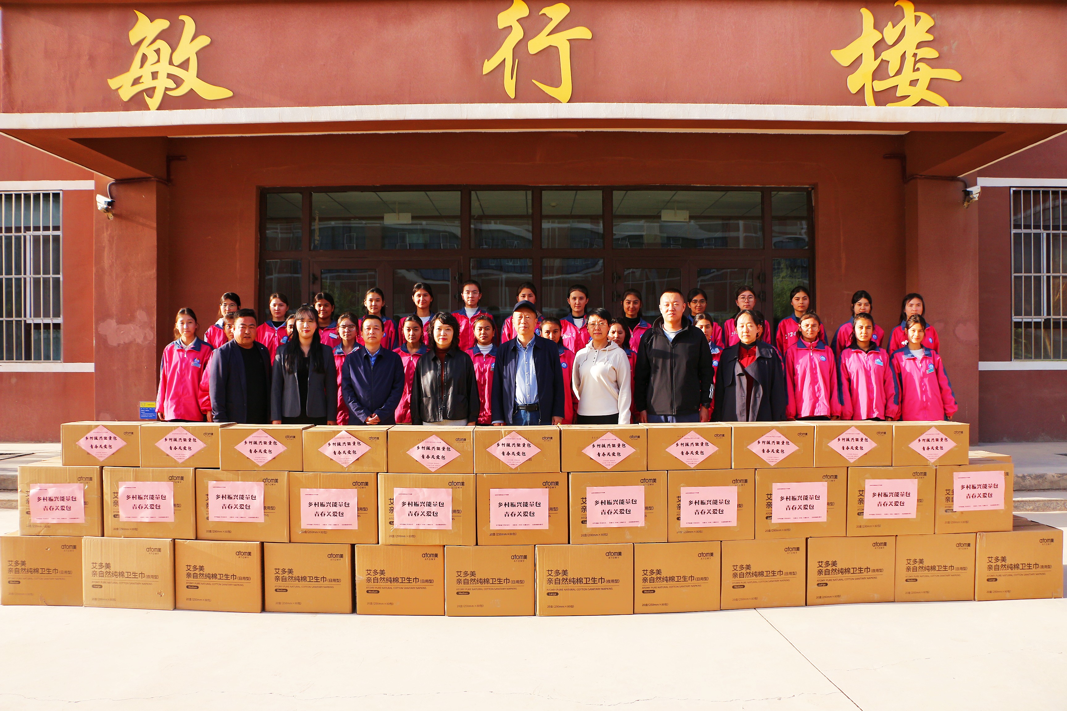 捐赠仪式上,中华思源工程基金会携手艾多美(中国)有限公司向柯枰湖州国庆中学捐赠价值32.52万元的“乡村振兴能量包